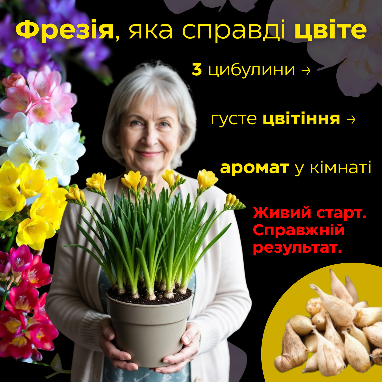 Фрезія "Люміра" — дві цибулини, які перетворюються на весну