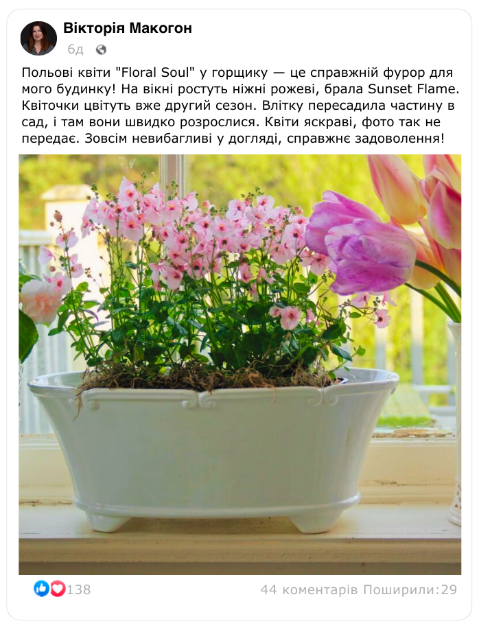 • Різнокольорове цвітіння 365 днів на рік (в домашніх умовах) та 3-4 місяці у відкритому ґрунті!