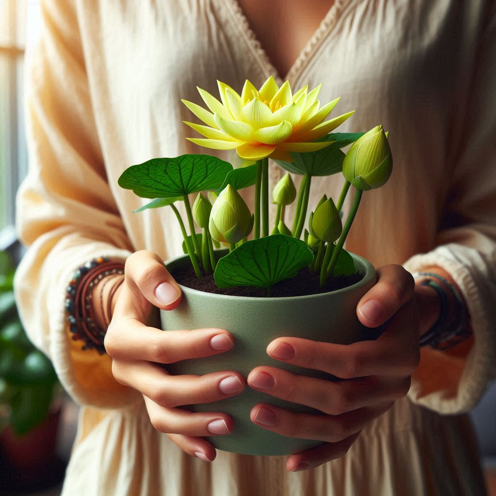 Лотос "Містерія" цвіте 4 разів на рік, забезпечуючи яскраві кольори в вашому домі. З правильним доглядом, ви можете насолоджуватися його квітами цілий рік, що робить його чудовою прикрасою для будь-якого простору.