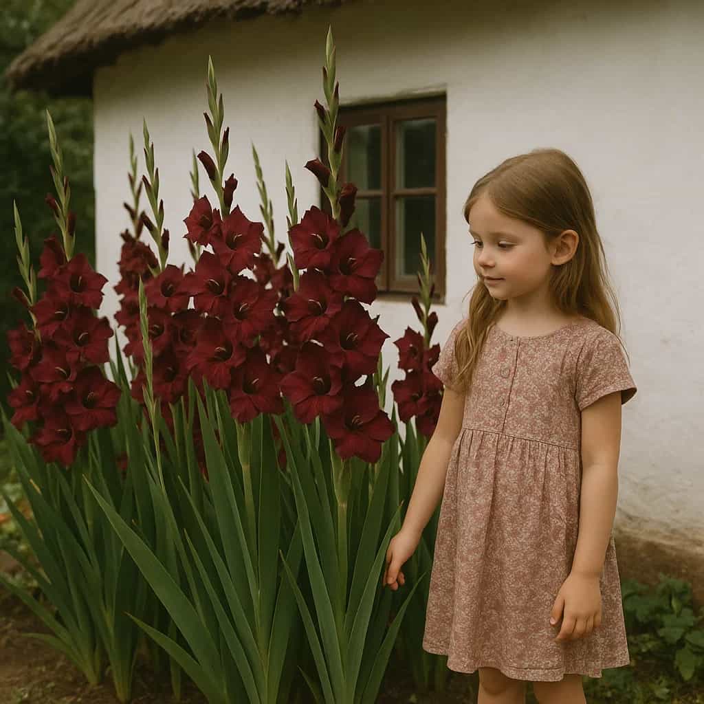 ✅ Унікальний глибокий колір: насичений майже чорний відтінок з винно-бордовими переливами — рідкість у гладіолусів. Ідеально підходить для створення контрасту у міксбордерах та букетах.